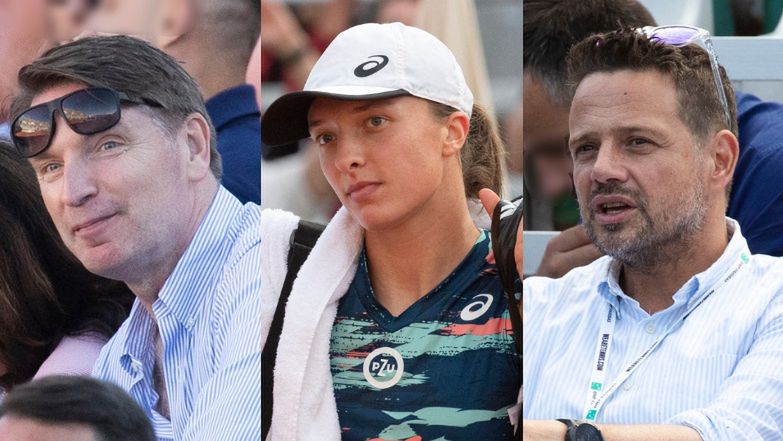 Tomasz Lis, Rafał Trzaskowski i Agata Świątek dopingowali Igę Świątek podczas meczu z Caroline Garcią (ZDJĘCIA)
