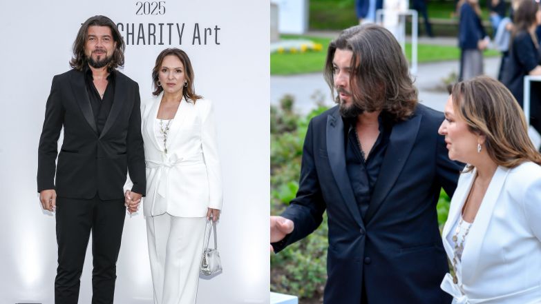 Na wystawę Top Charity Art 2025 para przybyła w niezwykle szykownych stylizacjach. Wokalista postawił na klasyczny garnitur w czarnym kolorze. Małą nutkę nonszalancji dodawała rozpięta na kilka górnych guzików koszula. Jego ukochana wybrała biel. Na ten wieczór przyodziała się w elegancki komplet, który dopełniła srebrnymi dodatkami.