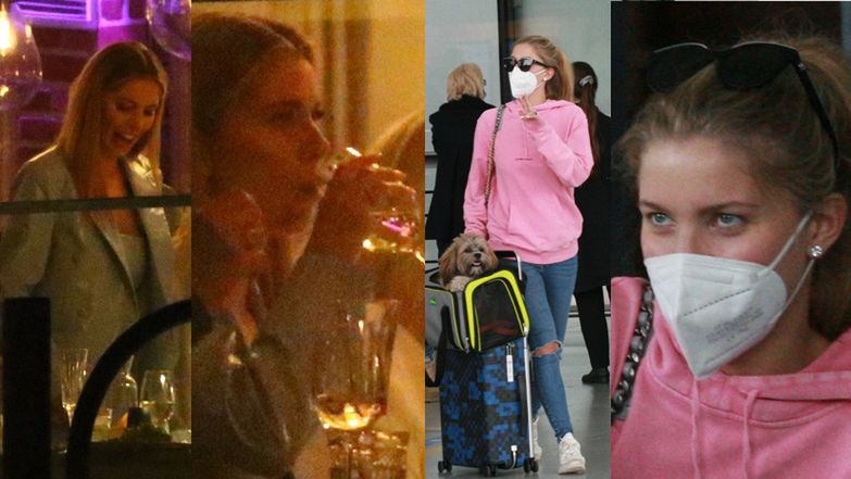 28-latka miała na sobie jeansy, różową bluzę Saint Laurent, sportowe buty Chanel i torebkę tej samej marki. Ciągnęła za sobą dużą granatową walizkę Louis Vuitton. Po przylocie natychmiast udała się na spacer z psem nieopodal lotniska. Następnie luksusowym BMW pojechała do hotelu.