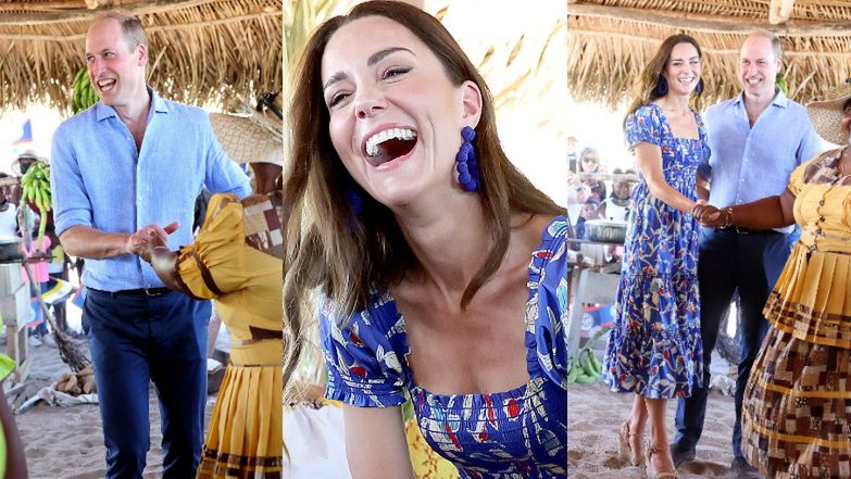 Po wysłuchaniu historii dotyczących pracy na plantacji książęca para została zaproszona na taneczną zabawę. Kate, ubrana w długą niebieską sukienkę ozdobioną kwiatowym printem i z beżowymi koturnami na nogach, z szerokim uśmiechem bawiła się w rytm muzyki, a na koniec została obdarowana grzechotkami. Równie zgrabnie radził sobie ukochany księżnej Cambridge, którego taneczne umiejętności zostały docenione przez świadków: Kręcił biodrami jak nikt inny - mówiła organizatorka zabawy.