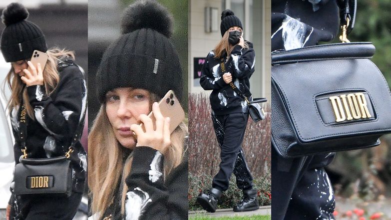 Tego dnia celebrytka pokusiła się o wygodną stylizację składającą się z dresów, czapki z pomponem i śniegowców. Fajnie wygląda?