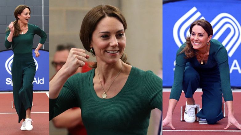 Kate ćwiczyła w eleganckim, sportowym wdzianku złożonym z zielonej bluzki i spodni z szerokimi nogawkami. Z jej twarzy nie schodził uśmiech i widać było, że jest w swoim żywiole.