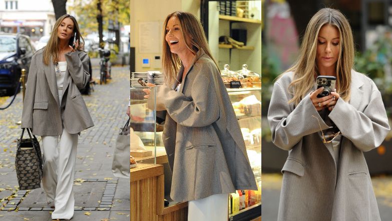 Po stolicy celebrytka przechadzała się w eleganckim kostiumie, który tego dnia zaprezentowała w "Dzień Dobry TVN". Stylizację uzupełniła oversize'ową marynarką oraz torbą Fendi.