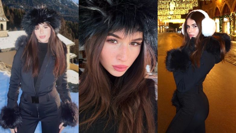 Uzbrojona w futrzastą czapkę Roksana Węgiel pręży się w szwajcarskich górach. Urodzona modelka? (ZDJĘCIA)