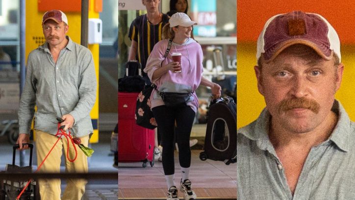 Wąsaty Piotr Adamczyk odbiera młodszą o 20 lat małżonkę i dwa psy z lotniska. Prawdziwy dżentelmen? (ZDJĘCIA)