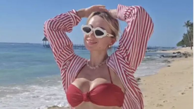 Wersow hasa po plaży, prezentując smukłą sylwetkę w czerwonym bikini (ZDJĘCIA)