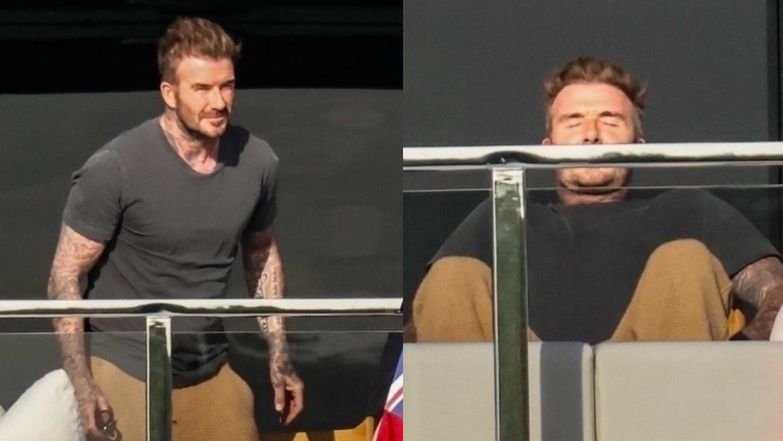 David Beckham wyjątkowo zrezygnował ze słonecznej kąpieli i pluskania się w oceanie. Zamiast tego zasiadł wygodnie na leżaku w grafitowej koszulce i długich musztardowych spodniach, mogąc wreszcie oddać się kontemplacji... lub po prostu zwykłej drzemce.