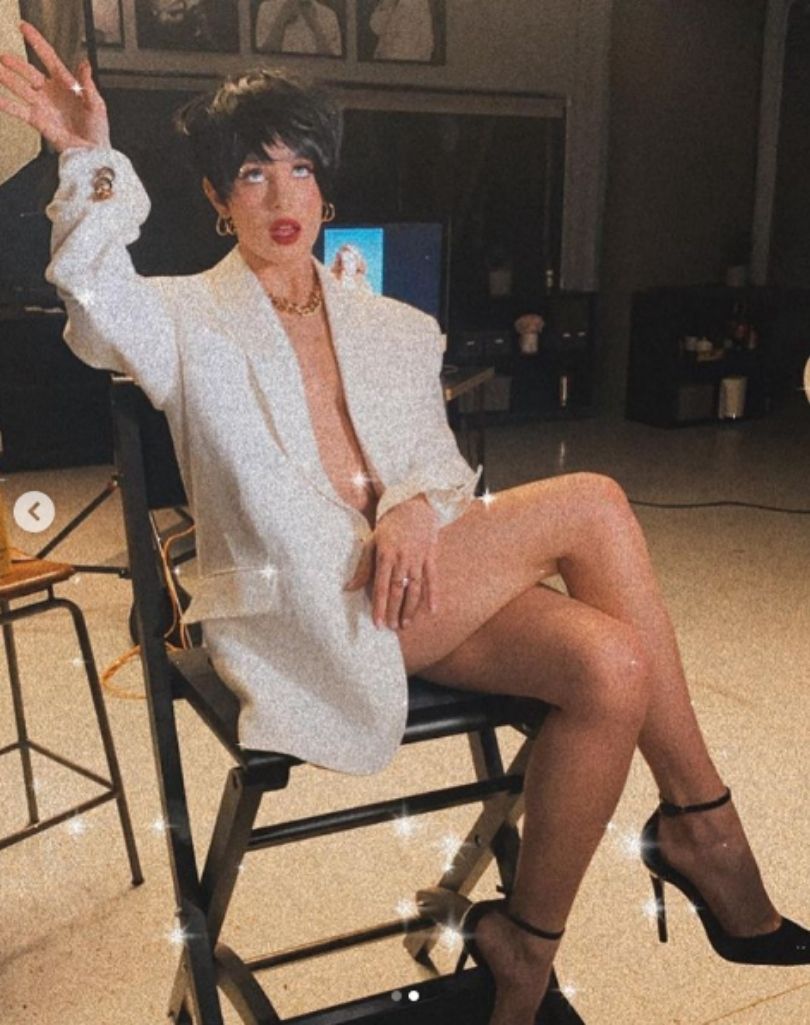 Ostatnio Wiktoria postanowiła nieco zaszaleć i zaskoczyła swoich obserwatorów zdjęciem w nietypowej stylizacji. 21-latka zapozowała odziana jedynie w białą marynarkę oraz niebotycznie wysokie szpilki. Do tego dobrała krótką czarną perukę, pomalowała usta jaskrawą czerwoną pomadką, a nogi ułożyła niczym Sharon Stone w kultowym Nagim Instynkcie.