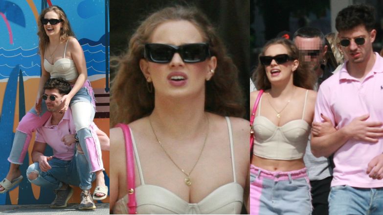Wiktoria Gąsiewska w krótkim topie beztrosko dokazuje na ulicach Sopotu. Wskoczyła ukochanemu na barana. Słodko? (ZDJĘCIA)