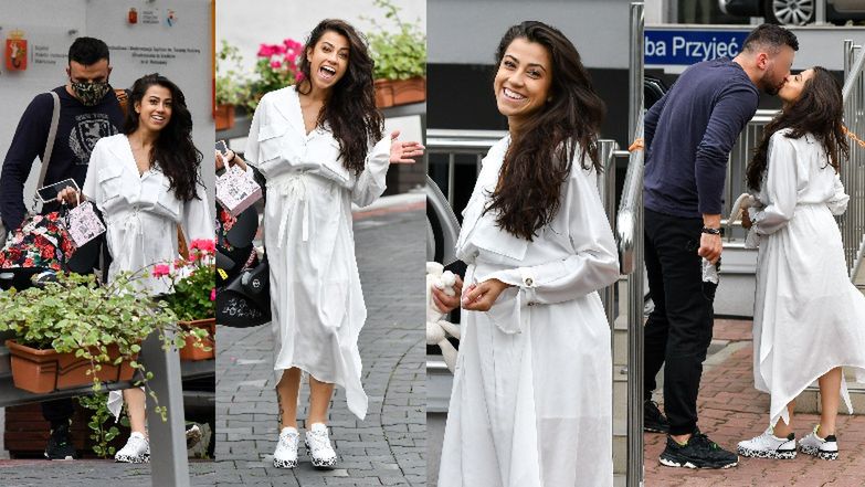 Tego dnia Hyży miała na sobie zwiewną, białą sukienkę, do której dobrała białe sneakersy.