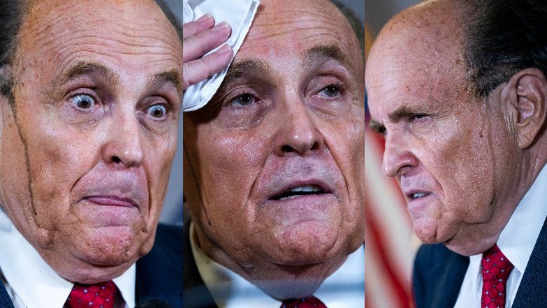 Rudy Giuliani w czwartek zorganizował konferencję prasową w Waszyngtonie, na której przedstawiał "dowody" na to, że podczas wyborów prezydenckich miało dochodzić do fałszerstw, które doprowadziły do porażki Donalda Trumpa. Sprawa okazała się dla niego tak emocjonująca, że co chwila musiał ocierać cieknący pot z czoła. Na domiar złego, wkrótce zlała się z nim... farba do włosów, która zaczęła ściekać brunatną stróżką po skroniach polityka.