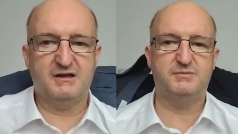 Piotr Wawrzyk wywiadu na temat losów migrantów na granicy polsko-białoruskiej udzielił w wygodnym zaciszu swojego domu, nie zauważając jednak wiszących na oparciu krzesła spodni, które dopiero po chwili starał się niepostrzeżenie usunąć z pola widzenia...