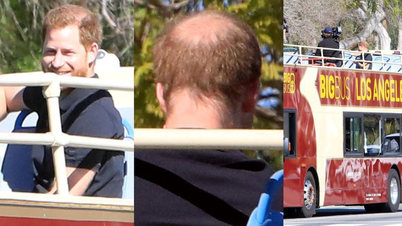 Sussexowie i gwiazdor telewizji znają się od kilku lat. Corden wraz z żoną gościł na ślubie Meghan i Harry'ego. Teraz najwyraźniej przeprowadził wywiad z księciem do swojego programu The Late Late Show with James Corden. Panowie rozsiedli się na dachu piętrowego autobusu, stylizowanego na te, które zobaczyć można w Londynie, i udali się na przejażdżkę ulicami Los Angeles. Na wykonanych przez paparazzi zdjęciach widać, że ukochany Markle czuje się przed kamerami wyjątkowo swobodnie. 36-latek zaprezentował nie tylko coraz większą łysinę zdobiącą jego głowę, ale i uśmiech od ucha do ucha.