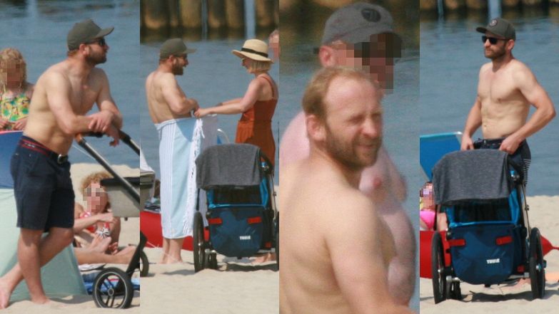 Półnagi Borys Szyc plażuje z żoną i synkiem (ZDJĘCIA)