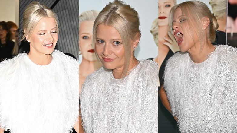Tego wieczoru Małgorzata Kożuchowska postawiła na bardzo kobiecą stylizację, która została zachowana w jasnych kolorach. Na ściance zaprezentowała się w pierzastej koszulce, do której dobrał pudrowo-różowe spodnie oraz szpilki. Aktorka stroiła miny, które były bardzo urocze.