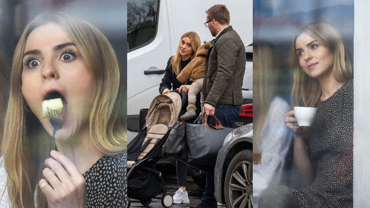 Po upojnych chwilach z koleżankami Kasia wybrała się na spacer z mężem i córeczką.