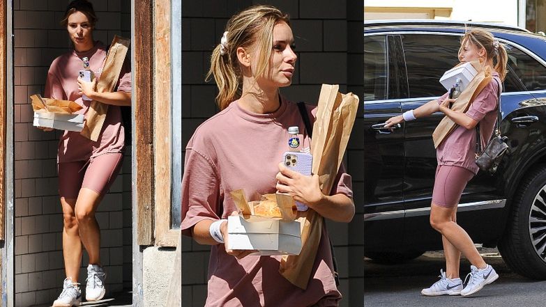 Paparazzi "przyłapali" Izabelę pod piekarnią, w której celebrytka zaopatrzyła się w świeże pieczywo.