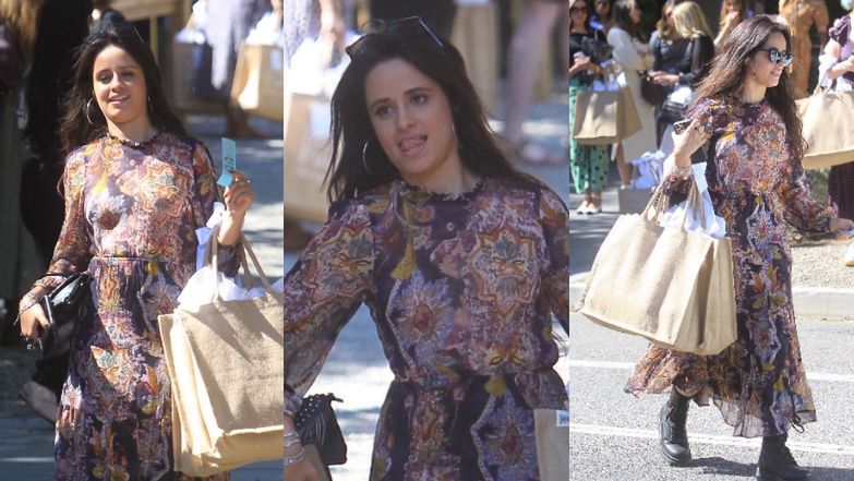 W tej drugiej wersji Camila została przyłapana 8 marca, gdy brała udział w lunchu organizowanym przez markę The Little Market z okazji Dnia Kobiet. Gwiazda skorzystała z ciepłej pogody i wyjęła z szafy zwiewną sukienkę we wzory. Look dopełniony został masywnymi, czarnymi glanami, delikatną biżuterią oraz masywną torbą, w której najprawdopodobniej znajdowały się upominki rozdawane gościom na przyjęciu.