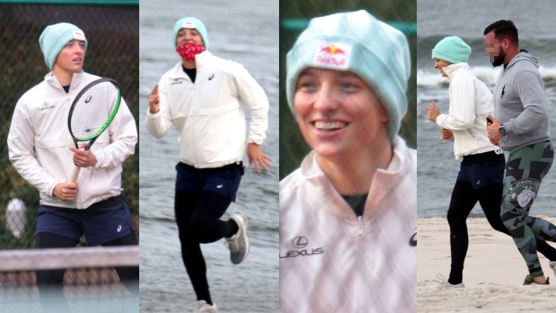 Podczas treningu na opustoszałej, nadbałtyckiej plaży Iga zdecydowała najwyraźniej, że nie ma większego sensu zakrywać twarzy maseczką.