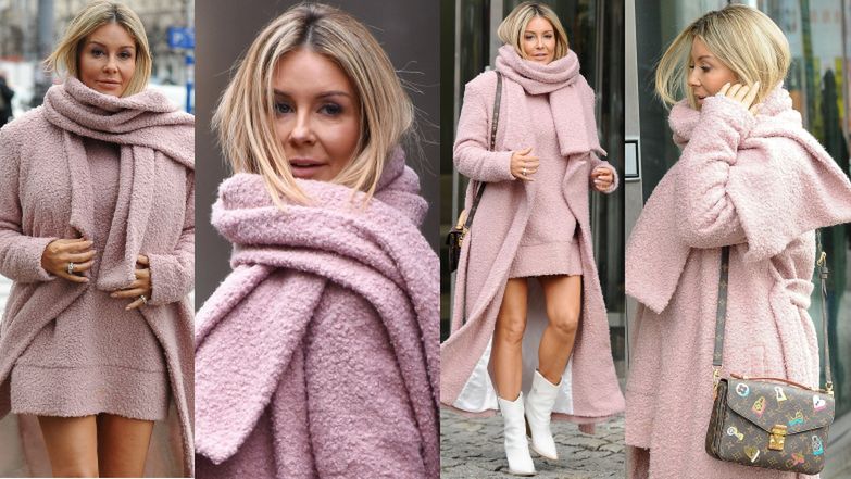 Ostatnio Gonia wybrała się do studia Dzień Dobry TVN, gdzie poruszyła temat in vitro. W drodze na wywiad starannie wystylizowana przyszła mama ochoczo pozowała do zdjęć. Stylowa celebrytka udowodniła, że nie straszna jej zima i zaprezentowała światu nagie łydki. Tego dnia postawiła na róż. Miała na sobie komplet w tym kolorze, na który składała się krótka sukienka, płaszcz i szalik z nowej kolekcji Roberta Czerwika. Całość stylizacji uzupełniła białymi kowbojkami Fendi i torebką marki Louis Vuitton.