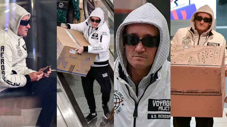 Zakapturzony niczym Michał Wiśniewski plądruje Galerię Mokotów z ogromnym pudłem w rękach (ZDJĘCIA)