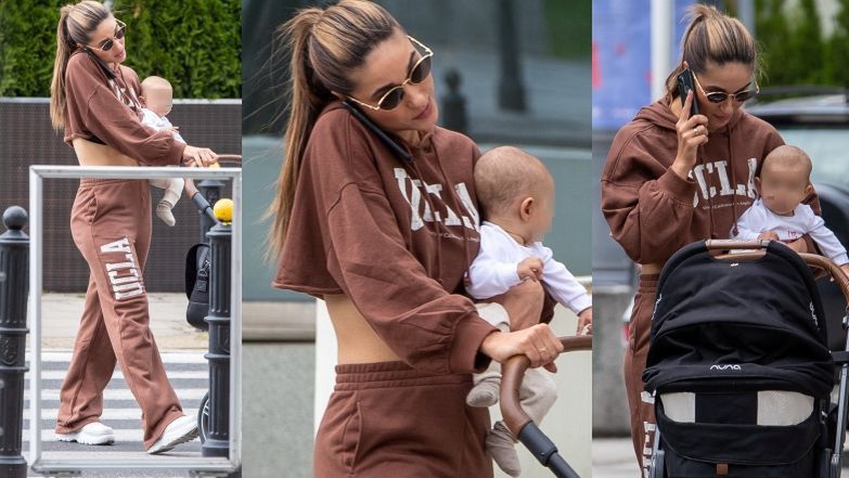 Ubraną w dresowy komplet z logiem kalifornijskiej uczelni Idę Nowakowską "przyłapano" podczas spaceru z synkiem. Gwiazda TVP cudem uniknęła mandatu...