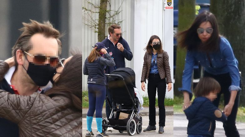 Podczas przechadzki każdy z członków rodziny miał na twarzy maskę. Mimo przymusu noszenia maseczek w miejscach publicznych, Marta i jej mąż co jakiś czas zdejmowali je z twarzy.