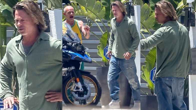 Zapuszczony Brad Pitt podziwia warty ponad 80 TYSIĘCY ZŁOTYCH motocykl basisty Red Hot Chilli Peppers (ZDJĘCIA)