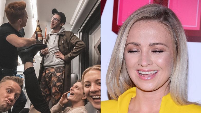 Imprezowa Barbara Kurdej-Szatan z butelką w ręku chwali się "domówką" w pociągu: "Trzeba sobie jakoś radzić" (FOTO)