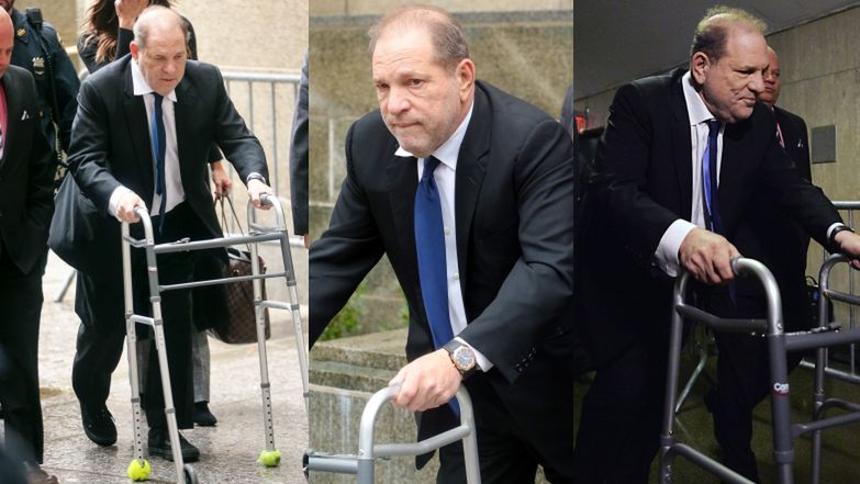 Zmizerniały Harvey Weinstein wychodzi z sądu wspierając się na balkoniku (ZDJĘCIA)