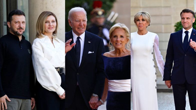 Znane pary zawitały do Pałacu Elizejskiego na uroczystą kolację: Joe i Jill Biden, Emmanuel i Brigitte Macron, państwo Zełenscy... (ZDJĘCIA)
