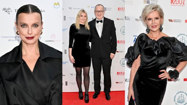 Na czerń w wieczorowej kreacji postawiła również Joanna Racewicz. Dziennikarka ochoczo pozowała do zdjęć w długiej sukni ozdobionej falbanami, którą uzupełniła połyskującą torebką i makijażem w stylu glamour. Czarny strój na tę okazję wybrała też Ewa Minge, która na gali pojawiła się w oryginalnym kombinezonie z cekinową górą i wycięciami na nogawkach.
