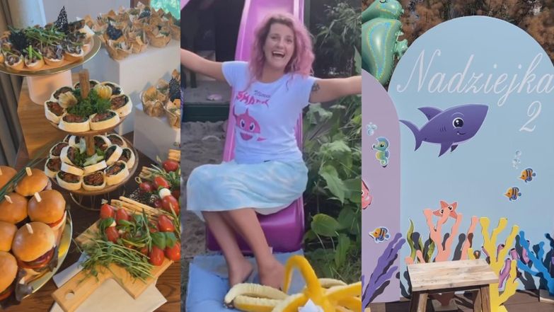 Na imprezie nie zabrakło też pokaźnej ilości dekoracji - od wiszących na choinkach figurek rybek, po ściankę z rekinem i pluszowe morskie stworzenia. Dzieci mogły korzystać również ze zjeżdżalni, którą wypróbowała sama gospodyni - prezentując swój ślizg na Instagramie.