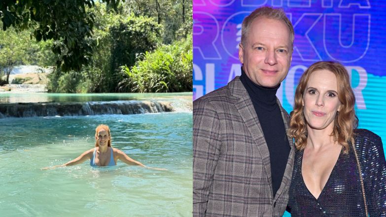 Katarzyna Błażejewska-Stuhr i Maciej Stuhr wraz z pociechami obenie przebywają w słonecznym Meksyku. W poniedziałek żona aktora podzieliła się z fanami kilkoma ujęciami z rajskich wczasów. Jak zdradziła, tego dnia wraz z rodziną mieli okazję podziwiać jedną z meksykańskich atrakcji turystycznych - Wodospady Agua Azul. Błażejewska-Stuhr zaprezentowała na Instagramie malownicze kadry wykonane podczas wycieczki, nie ukrywając, że dostarczyła ona jej rodzinie niezapomnianych wrażeń. Wśród opublikowanych przez nią zdjęć znalazło się m.in. ujęcie, na którym widać, jak pływa w lazurowej wodzie. Dietetyczka pokazała też fotografię, do której zapozowała na tle meksykańskich wodospadów w towarzystwie męża i pociech.