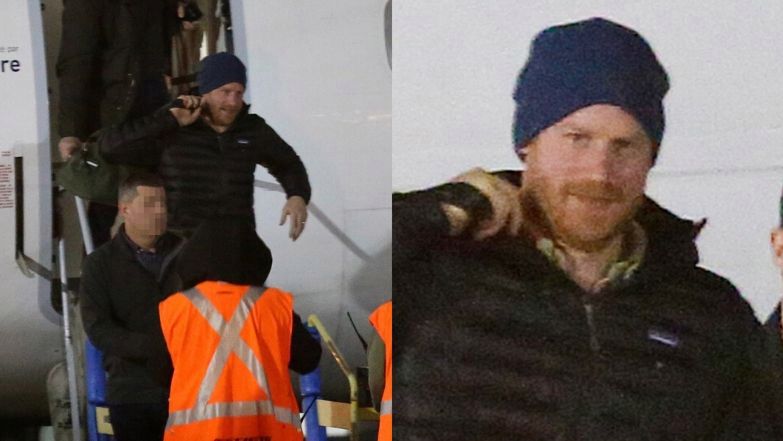 Paparazzi "przyłapali" męża Meghan Markle, kiedy pewnym krokiem opuszczał pokład samolotu.