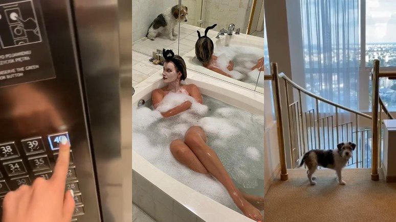 Zachwycona pobytem w imponującym lokum Zborowska postanowiła również pochwalić się w sieci kąpielą w wannie, w której, jak napisała pod zdjęciem, relaksowali się m.in. Michael Jackson i Michelle Obama. Podczas wypoczynku w gwiazdorskiej łazience towarzyszyła jej czworonożna przyjaciółka.