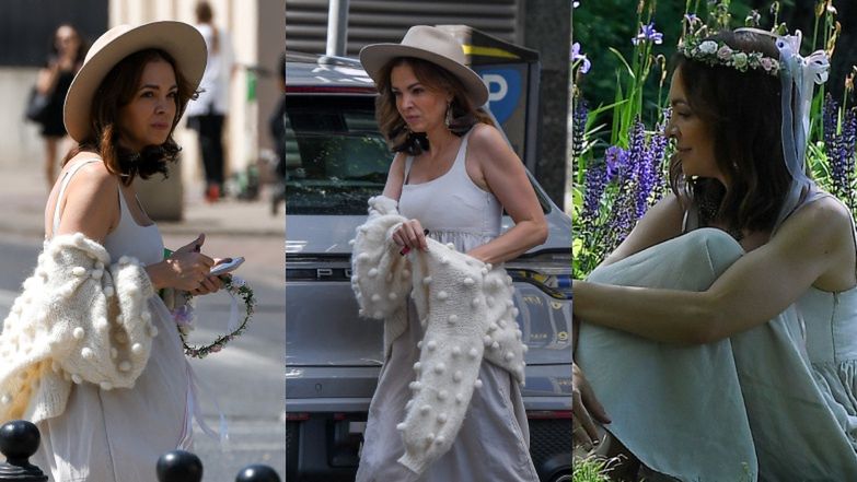 Dziennikarka i podróżniczka wskoczyła na tę okazję w letnią sukienkę maxi na ramiączkach, do której dobrała jasne baleriny, słomkowy kapelusz oraz opuszczony sweterek z bąbelkami. Zdecydowanie najbardziej wykosztowała się na pikowaną torebkę Chanel, której zakup mógł uszczuplić jej stan konta nawet o 25 tysięcy złotych. Całość tworzyła spójny kolorystycznie zestaw.